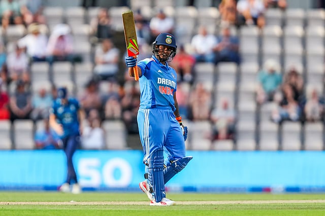 लक्ष्याचा पाठलाग करताना स्मृती मानधना (२८) व प्रतिका रावल (३६) यांनी आक्रमक सुरुवात करताना ८ षटकांत ४८ धावा फलकावर लावल्या. मात्र स्मृती बाद झाल्यावर भारताचा डाव काहीसा घसरला. कर्णधार हरमनप्रीत (१७) व हरलीन देओल (२७) मोठी खेळी साकारू शकले नाहीत. मग ४ बाद १२४ अशी स्थिती असताना दीप्तीला सहाव्या क्रमांकावर बढती देण्यात आली. दीप्ती व जेमिमा यांनी पाचव्या विकेटसाठी ९० धावांची भर घातली. दीप्तीने तिसरे एकदिवसीय अर्धशतक झळकावले. लॉरेन फिलरने जेमिमाला बाद केले. मात्र अमनजोत (नाबाद २०) व दीप्ती यांनी ४९व्या षटकात विजयावर शिक्कामोर्तब केले.