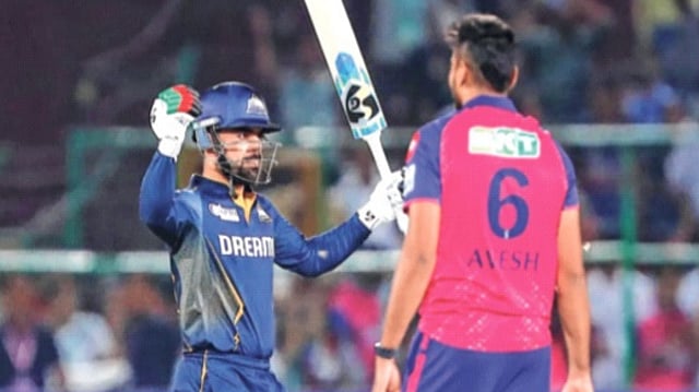 जयपूर : करामती रशिद खानने ११ चेंडूंत फटकावलेल्या नाबाद २४ धावांच्या बळावर गुजरात टायटन्सने बुधवारी रात्री आयपीएलमध्ये रोमहर्षक लढतीत राजस्थान रॉयल्सचा ३ गडी राखून अखेरच्या चेंडूवर पराभव केला. गुजरातचा हा सहा सामन्यांतील तिसरा विजय ठरला, तर राजस्थानला पाच लढतींमध्ये पहिला पराभव पत्करावा लागला.