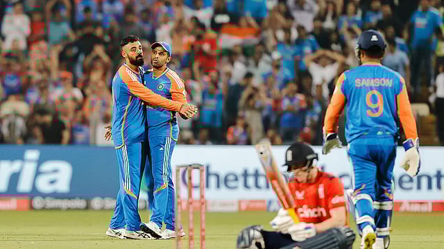 पुणे, गहुंजे येथील महाराष्ट्र क्रिकेट असोसिएशनच्या स्टेडियमवर झालेल्या या सामन्यात इंग्लंडने नाणेफेक जिंकून भारताला फलंदाजीसाठी आमंत्रित केले. मात्र साकिब महमूदने दुसऱ्या षटकात संजू सॅमसन (१), तिलक वर्मा (०) व कर्णधार सूर्यकुमार यादव (०) यांना बाद करून भारताची ३ बाद १२ अशी अवस्था केली. विशेषत: सॅमसन व सूर्यकुमार यांची अपयशाची मालिका कायम असून त्यांना चार लढतींमध्ये एकही अर्धशतक करता आलेले नाही.