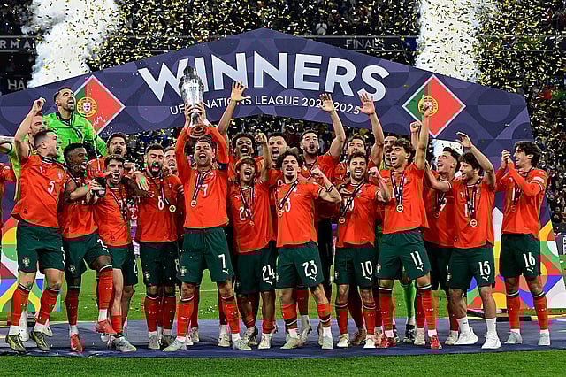 म्युनिक : ख्रिस्तियानो रोनाल्डोच्या नेतृत्वात खेळणाऱ्या पोर्तुगालने रविवारी मध्यरात्री दुसऱ्यांदा नेशन्स लीग फुटबॉल स्पर्धेचे विजेतेपद काबिज केले. पेनल्टी शूटआऊटपर्यंत रंगलेल्या अंतिम सामन्यात पोर्तुगालने गतविजेत्या स्पेनवर २-२ (५-३) असा थरारक विजय मिळवला. याबरोबरच त्यांनी २०२६च्या फिफा विश्वचषक फुटबॉल स्पर्धेसाठी आपली तयारी जोरात सुरू असल्याचे एकप्रकारे पोर्तुगालने जाहीर केले. या लढतीकडे ४० वर्षीय रोनाल्डो आणि १७ वर्षीय लामिन यमाल यांच्यातील जुगलबंदी म्हणूनही पाहिले जात होते. मात्र यामध्ये अखेरीस रोनाल्डोनेच बाजी मारली.