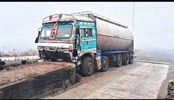 शुक्रवारी सकाळी तालुक्यात सर्वत्रच धुक्याची चादर पसरली होती. दरम्यान शुक्रवारी सकाळी ७ वाजेच्या सुमारास यूपी १५ एफटी ०२२४ हा दुधाने भरलेला टँकर भिवंडी-वाडा रस्त्याने भिवंडीच्या दिशेने जात होता. त्यावेळी टँकर कवाड नाक्यावरील बंद टोलनाक्यावर आला असता, दाट धुक्यामुळे टँकरचालकाला दुभाजकाचा अंदाज आला नाही. त्यामुळे भरधाव वेगात अचानकपणे चालकाचे टँकरवरील नियंत्रण सुटल्याने टँकर दुभाजकावर धडकला. त्यानंतर टँकरच्या पाठीमागून वेगात आलेल्या टेम्पोने टँकरला धडक दिली.