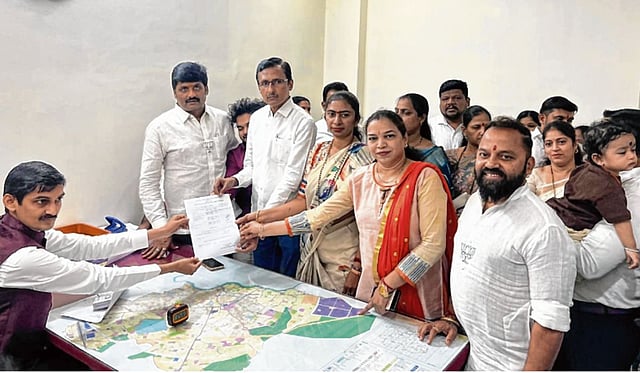 उमेदवारी अर्ज दाखल करतांना शिंदेसेनेचे नेते प्रकाश पाटील, आमदार शांताराम मोरे, भाजपचे शहराध्यक्ष रवी सावंत, गट नेते संतोष शेट्टी, नगरसेवक सुमित पाटील, काँग्रेस शहराध्यक्ष माजी आमदार रशीद ताहीर मोमीन, समाजवादीचे आमदार रईस शेख यांच्यासह नगरसेवक व कार्यकर्ते मोठ्या संख्येने उपस्थित होते.