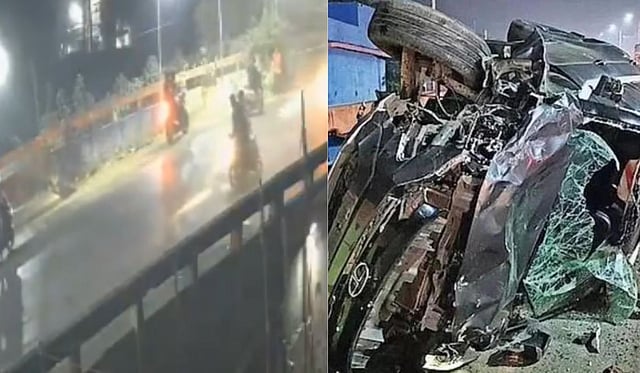 अंबरनाथच्या पूर्व-पश्चिम जोडणाऱ्या उड्डाणपुलावर शुक्रवारी (दि.२१) सायंकाळी ही घटना घडली. शिंदे गटाच्या उमेदवार किरण चौबे यांची ही गाडी होती. त्यांचा ड्रायव्हर लक्ष्मण शिंदे याला अचानक हृदयविकाराचा झटका आला आणि ही भीषण घटना घडली. त्यांची कार समोरून येणाऱ्या दुचाकींवर आदळली. यामध्ये काहीजण तर थेट उड्डाणपुलावरुन खाली फेकले गेले.