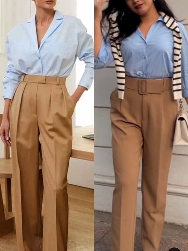 नेव्ही ब्लू पॅन्ट आणि पांढरा शर्ट हे ऑफिससाठी परफेक्ट कॉम्बो. कमी ॲक्सेसरीजमध्येही हा लूक इंप्रेस करतो. | Pintrest