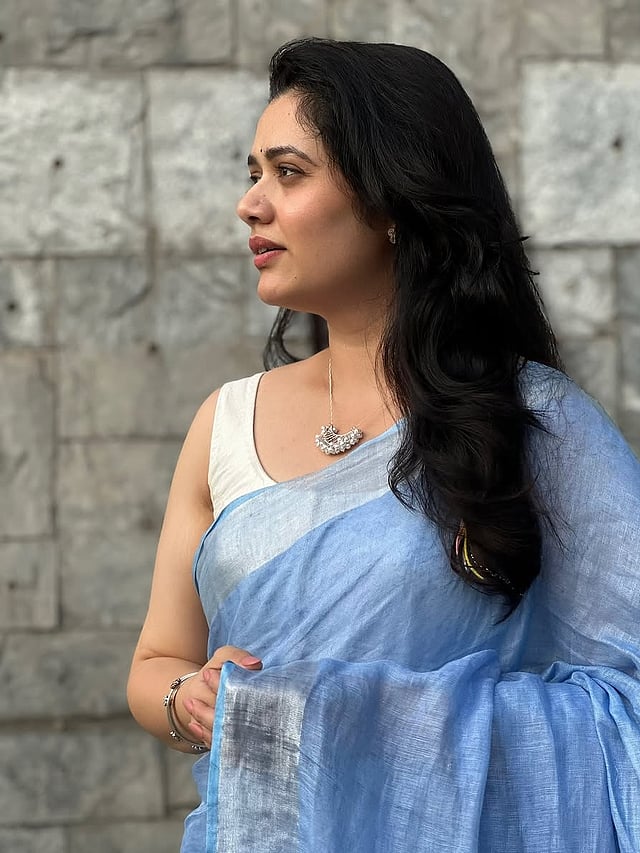 तिच्या निळ्या साडीतील फोटोंनी इंटरनेटवर धुमाकूळ घातला आहे.