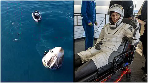 ड्रॅगन कॅप्सूल पृथ्वीच्या वातावरणात प्रवेश करताना त्याचा वेग ताशी १७,००० मैल होता. तो काही मिनिटांतच कमी झाला. पहाटे ३:२४ वाजण्याच्या सुमारास पहिल्यांदा ड्रॅगन कॅप्सूलचे दोन पॅराशूट उघडले गेले. यामुळे त्याचा वेग आणखी कमी झाला. या दरम्यान, एक धक्का बसल्यानंतर कॅप्सूलचा वेग आणखी मंदावला आणि ते अलगदपणे समुद्रात उतरले. त्यानंतर रिकव्हरी टीमने तेथे पोहोचून पहिल्यांदा सुरक्षेची तपासणी केली आणि पॅराशूट हटवले. दरम्यान, समुद्राच्या पाण्यावर कॅप्सूल उतरल्यानंतर त्याच्याभोवती डॉल्फिन गोळा झालेले दिसले. ‘नासा’च्या जॉन्सन स्पेस सेंटरने या क्षणाचा एक व्हिडिओ शेअर केला आहे. त्यानंतर रिकव्हरी टीमने ‘कॅप्सूल’ बोटीवर चढवले. यानंतर जगभरातील लोकांनी सुनिता विल्यम्स आणि इतर अंतराळवीरांना सुरक्षितपणे बाहेर येताना पाहिले.