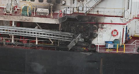 एडन : येमेनजवळ पुन्हा एका व्यापारी जहाजावर ड्रोन हल्ला झाला आहे. यानंतर जहाजाला आग लागली. पण ही आग तत्काळ विझविण्यात यश आले. या जहाजावर २२ कर्मचारी असून त्यात ९ जण भारतीय आहेत.