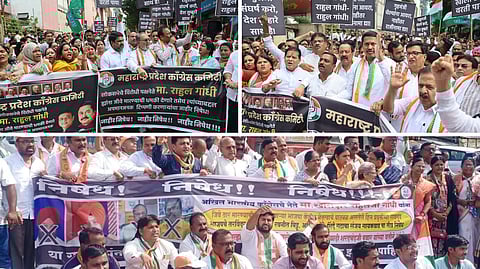 मुंबई : राहुल गांधी यांना जीवे मारण्याची धमकी देणारे तालिबानीवृत्तीचे असून राहुल गांधी यांचा अपमान कदापी सहन करणार नाही. राहुल गांधी यांच्याविरोधात बेताल वक्तव्य करणाऱ्यांना महायुतीच्या नेत्यांनी लगाम घालावा, असा इशारा देत भाजपविरोधात काँग्रेसने राज्यभरात आंदोलन केले.