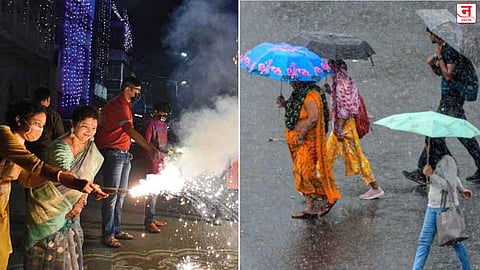 मुंबई : दिवाळीचा सण अवघ्या काही दिवसांवर येऊन ठेपला असतानाच, फटाके फोडायचे की पावसात भिजायचे, असा प्रश्न नागरिकांना सतावू लागला आहे. राज्यात गुरुवारपासून पुन्हा एकदा पावसाचा इशारा देण्यात आला आहे. शुक्रवारी आणि शनिवारीसुद्धा पावसाच्या सरी बरसतील, असा अंदाज भारतीय हवामान विभागाने वर्तवला आहे.