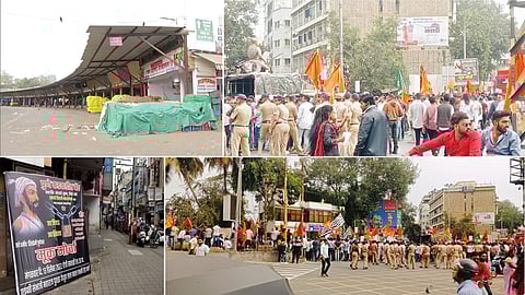 राज्यपाल भगतसिंग कोश्यारी (BhagatSingh Koshyari) आणि भाजपचे प्रवक्ते सुधांशू त्रिवेदी (Sudhanshu Trivedi) यांनी छत्रपती शिवाजी महाराज (Chhatrapati Shivaji Maharaj) यांच्याबद्दल केलेल्या वादग्रस्त वक्तव्याचा विरोध म्हणून पुण्यामध्ये (Pune Bandh) कडकडीत बंदची हाक दिली आहे. या बंदला भाजप वगळता इतर सर्व पक्षांनी पाठिंबा दर्शवला आहे. छत्रपती शिवाजी महाराज यांच्याबद्दल वादग्रस्त वक्तव्य केल्यानंतरही त्यांच्यावर भाजपने कारवाई केली नाही. त्यानंतर संतप्त शिवप्रेमींनी ही बंदची हाक दिली. विशेष म्हणजे, निषेध म्हणून काढण्यात आलेल्या मूक मोर्चामध्ये भाजप खासदार उदयनराजे भोसले यांनीदेखील उपस्थिती दर्शवली. शहरातील बहुतांश दुकाने, हाॅटेल सकाळपासून बंद होती. बंदमुळे शहरात कडक बंदोबस्त ठेवण्यात आला आहे. राज्यपाल भगतसिंग कोश्यारी यांना पदावरून हटवण्याची मागणी यावेळी आंदोलनकर्त्यांनी केली आहे.