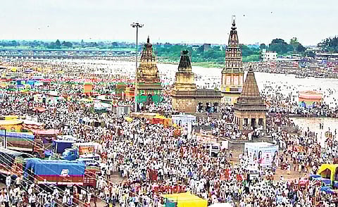 कोरोनानंतर तब्ब्ल दोन वर्षांनी रविवारी दि.१० जुलै रोजी पंढरीत आषाढी एकादशीचा मुख्य सोहळा साजरा होत आहे. त्यानिमित्त पंढरपुरातील चंद्रभागेचा परिसर भाविकांनी फुलून गेला आहे. आषाढी सोहळ्यासाठी सुमारे ६ लाखांवर भाविक पंढरीत दाखल झाले असून विठूनामाच्या जयघोषाने आसमंत दुमदुमून गेला आहे. भक्तीरस आणि पावसात होत असलेल्या भजन आणि कीर्तनात भाविक चिंब झाले आहेत. पंढरीत भक्तीरसाला उधाण आले आहे. दोन वर्षानंतर पंढरीत विठ्ठल-नामाची शाळा भरली असल्याने आनंदाला उधाण आले आहे.