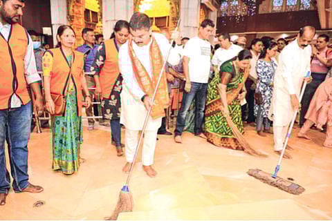 अयोध्येत येत्या २२ जानेवारी रोजी प्रभू श्रीराम मंदिरात प्राणप्रतिष्ठा करून मंदिराचे लोकार्पण केले जाणार आहे. या निमित्ताने देशभरातील मंदिरे आणि प्रार्थनास्थळांवर स्वच्छता मोहीम राबवावी, असे आवाहन पंतप्रधानांनी केले होते. याला प्रतिसाद देत खासदार शेवाळे यांनी शुक्रवारी सकाळी प्रभादेवी येथील सिद्धीविनायक मंदिरात आणि मंदिर परिसरात साफसफाई करून सेवा केली. तसेच, प्रति पंढरपूर म्हणून ओळखल्या जाणाऱ्या वडाळा येथील विठ्ठल मंदिरात देखील स्वच्छता मोहीम राबविण्यात आली.