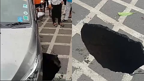 मुंबई : प्रभादेवी पश्चिमेतील किस्मत टॉकीजजवळील रस्ता गुरुवारी दुपारच्या सुमारास खचला. या खचलेल्या रस्त्यात एक चारचाकी वाहन अडकले होते.