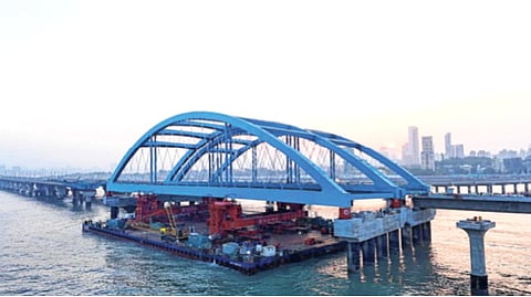 मुंबई : मुंबईची वाहतूककोंडी फोडण्यासाठी महत्त्वपूर्ण ठरणाऱ्या कोस्टल रोड प्रकल्पातील आव्हानात्मक टप्प्यातील अडीच हजार मेट्रिक टन वजनाचा ‘बो स्ट्रिंग आर्च गर्डर’ बुधवारी पहाटे यशस्वीपणे बसवण्यात आला. विशेष म्हणजे, ३ वाजता सुरू झालेले हे काम ६ वाजून ७ मिनिटांनी संपले. याचाच अर्थ, ३ तास ७ मिनिटांत दुसरा गर्डर बसवण्याचे मिशन फत्ते झाले. समुद्रातील भरती व ओहोटीचे चॅलेंज स्वीकारत दुसरा गर्डर यशस्वीपणे बसवण्यात आल्याने अभियांत्रिकी आविष्कार घडला आहे. पहिला बो स्ट्रिंग आर्च गर्डर २६ एप्रिल रोजी बसवण्यात आला, तर दुसरा गर्डर बुधवार १५ मे रोजी बसवण्यात आल्याने पुढील दीड महिन्यांत वांद्रे ते मरीन ड्राईव्ह दरम्यानचा प्रवास फक्त १२ मिनिटांत करणे शक्य होणार असल्याचे पालिका प्रशासनाकडून सांगण्यात आले.