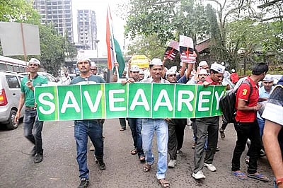 कुलाबा-वांद्रे-सिप्झ मेट्रो-३ची कारशेड उभारण्याच्या कामाला सुरुवात करता यावी, यासाठी राज्य सरकारने गुरुवारी आरेतील कामावरील बंदी उठविली. याचा निषेध करण्याकरिता आम आदमी पार्टीने आरे येथील पिकनिक पॉइंट येथे आंदोलन केले. या आंदोलनात मोठ्या संख्येने आम आदमी पार्टीचे नेते आणि पर्यावरणप्रेमींनी सहभाग नोंदवला. यावेळी राज्य सरकार विरोधात जोरदार घोषणाबाजी करण्यात आली.