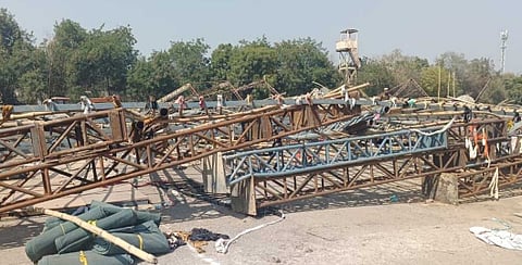नवी दिल्ली : दक्षिण दिल्लीतील जवाहरलाल नेहरू स्टेडियममध्ये उभारण्यात आलेले एक तात्पुरते बांधकाम शनिवारी सकाळी ११ वाजण्याच्या दरम्यान कोसळल्याने किमान २९ जण जखमी झाल्याची माहिती पोलीस अधिकाऱ्याने दिली.