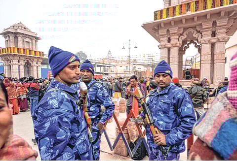 अयोध्येत उभारण्यात आलेल्या राम मंदिराला त्रिस्तरीय सुरक्षा व्यवस्था देण्यात आली आहे. मंदिराच्या अगदी जवळच्या वर्तुळात सीआरपीएफचे जवान तैनात असतील.