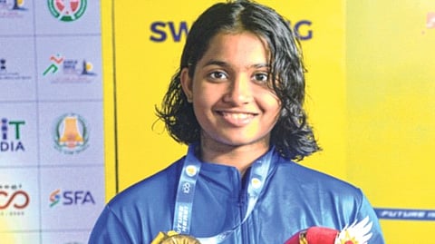 मुलींच्या १०० मीटर बटरफ्लाय शर्यतीत आदिती हेगडे हिने सुवर्णपदक जिंकून यंदाच्या या स्पर्धेतील पदकांची हॅट्ट्रिक पूर्ण केली. तिने ही शर्यत एक मिनिट ४.७८ सेकंदात पूर्ण केली. तिने रविवारी महाराष्ट्राला ४ बाय १०० मीटर फ्रीस्टाईल रिले शर्यतीतही सुवर्णपदक मिळवून दिले. तिने दिवा पंजाबी, राघवी रामानुजन, अलीफिया धनसुरा यांच्या साथीने सुवर्णपदक पटकाविताना चार मिनिटे ८.६१ सेकंद वेळ नोंदवली.