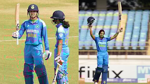 मानधना आणि रावल जोडीने २६.४ षटकांत २३३ धावांची भागीदारी रचली. आपल्या सहाव्या सामन्यातच प्रतिकाने पहिले आंतरराष्ट्रीय शतक झळकावले.