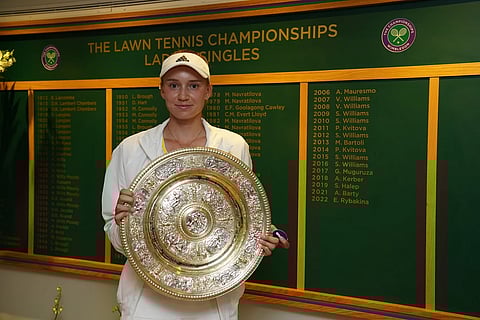 विम्बल्डन टेनिस स्पर्धेत सेंटर कोर्टवर रंगलेल्या अंतिम सामन्यात शनिवारी कझाकस्तानच्या एलिना रिबाकिनाने ट्युनिशियाची ओन्स जाबेऊर हिला ३-६, ६-२, ६-२ असे नमवित महिला एकेरीचे विजेतेपद पटकाविले. कारकीर्दीतील तिचे हे पहिले ग्रँडस्लॅम जेतेपद ठरले. ग्रँडस्लॅम जिंकणारी ती कझाकस्तानची पहिली खेळाडू ठरली.