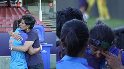 आयसीसी टी - २० विश्वचषकावर (Women's T20 WC) नाव कोरण्याचे भारतीयांचे स्वप्न पुन्हा एकदा भंगले. भारताच्या महिला संघाने संपूर्ण स्पर्धेत चांगली कामगिरी करत आयसीसी महिला टी - २० विश्वचषकाची उपांत्य फेरी गाठली. मात्र, यामध्ये ऑस्ट्रेलिया संघाकडून भारतीय संघाला पारभाव पत्करावा लागला. अगदी शेवटच्या षटकापर्यंत हा सामना अटीतटीचा ठरला होता. यावेळी भारताची कर्णधार हरमनप्रीत कौरने (Harmanpreet Kour) आजारी असूनही देशासाठी झुंजार खेळी करत ५२ धावा केल्या. मात्र, त्यानंतर बाद झाल्याने दुखी झालेली हरमनप्रीत सामन्यानंतर भारताची माजी कर्णधार अंजुम चोप्राला (Anjum Chopra) मिठी मारत रडताना दिसली.