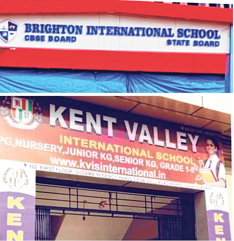 ब्राइटन इंटरनॅशनल स्कूल खर्डीगाव व केंट व्हॅली इंटरनॅशनल स्कूल, सुदामा रेंजन्सी या दोन्ही शाळा शासनाची मान्यता नसतानाही सुरू आहेत. या शाळेतील व्यवस्थापक व मुख्याध्यापकांनी या शाळेचे लेटर पॅड, मुख्याध्यापकांचे शिक्के, शाळेचे शिक्के, शाळा सोडल्याचे दाखले, फी पावती पुस्तक व देणगी पुस्तक पावत्या बोगसपणे तयार केलेल्या आहेत. शासनाची दिशाभूल करून इरादापत्र मिळवले असून शासन नियमांनुसार पाच गुंठा जमीन हवी असताना केंट शाळा रहिवासी इमारतीच्या पहिल्या मजल्यावर भरवली जाते.