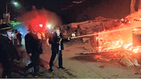 ठाणे : मुंब्रा कौसा परिसरात शुक्रवारी पहाटे लागलेल्या आगीत एक लाकडी वखार, तीन गाळे आणि १५ दुचाकी जाळून खाक झाल्या आहेत. आग नेमकी कशामुळे लागली हे समजू शकले नसले तरी ही आग शॉर्टसर्किटमुळे लागल्याचा प्राथमिक अंदाज वर्तवण्यात आला आहे. ३ हायराईज फायर वाहन, १ वॉटर टँकर, १ रेस्क्यू वाहनासह,१ खाजगी जेसीबी मशीनच्या सहाय्याने एक तासानंतर आगीवर नियंत्रण मिळवता आल्याची माहिती ठाणे महापालिकेच्या आपत्ती व्यवस्थापन कक्षाने दिली.
