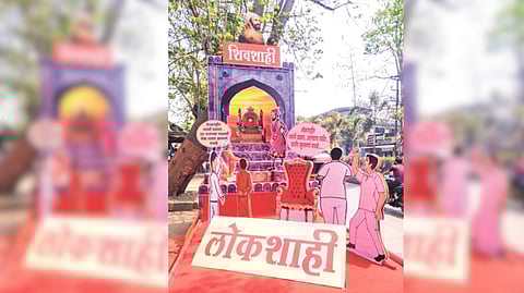 कल्याण : गुरुवारी राज्यभरात तिथीनुसार शिवजयंती साजरी करण्यात आली. कल्याणात दोन्ही शिवसेनेकडून मिरवणूक देखील काढण्यात आली. या मिरवणुकीत छत्रपती शिवाजी महाराजांच्या जीवनावर आधारित चित्ररथ सादर करण्यात आले होते. मात्र कल्याणच्या रामबाग शिवसेना उद्धव बाळासाहेब ठाकरे शाखेकडून शिवसेना उपनेते विजय साळवी यांच्या संकल्पनेतून एक वादग्रस्त चित्ररथ तयार करण्यात आला. शिवजयंतीनिमित्त कल्याणच्या रामबागेत शिवशाहीमधील मावळे आणि लोकशाहीमधील मावळे हा देखावा साकारला. लोकशाहीत ज्यांनी घडवलं... त्यांच्याच पाठीत खंजीर खुपसणारे मावळे असा या देखाव्यात उल्लेख असून या देखाव्याला पोलिसांनी आक्षेप घेत हा देखावा काढण्यासाठी पोलिसांनी दबावतंत्र वापरले.