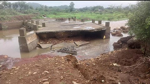 भिवंडी : भिवंडी सार्वजनिक बांधकाम विभागाने बांधलेला कुहे ग्रामपंचायत हद्दीतील मढवी पाडा, भरे नगर भंडारपाडाकडे जाणारा पूल पहिल्याच पावसात कोसळल्याने आदिवासी दुर्गम भागातील आदिवासी बांधवांची मोठी गैरसोय झाली आहे. त्यामुळे आदिवासी बांधवांमध्ये सार्वजनिक बांधकाम उपविभाग विरोधात संतापाची लाट उसळली असून गेल्या दोन महिन्यापूर्वी बांधलेला पूल दोन दिवसांपूर्वी सुरुवातीच्या पावसात कोसळल्याने सार्वजनिक बांधकाम उपविभागाचा भ्रष्ट कारभार उघडकीस आला आहे.